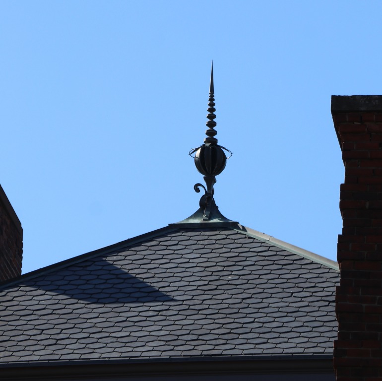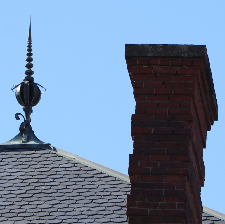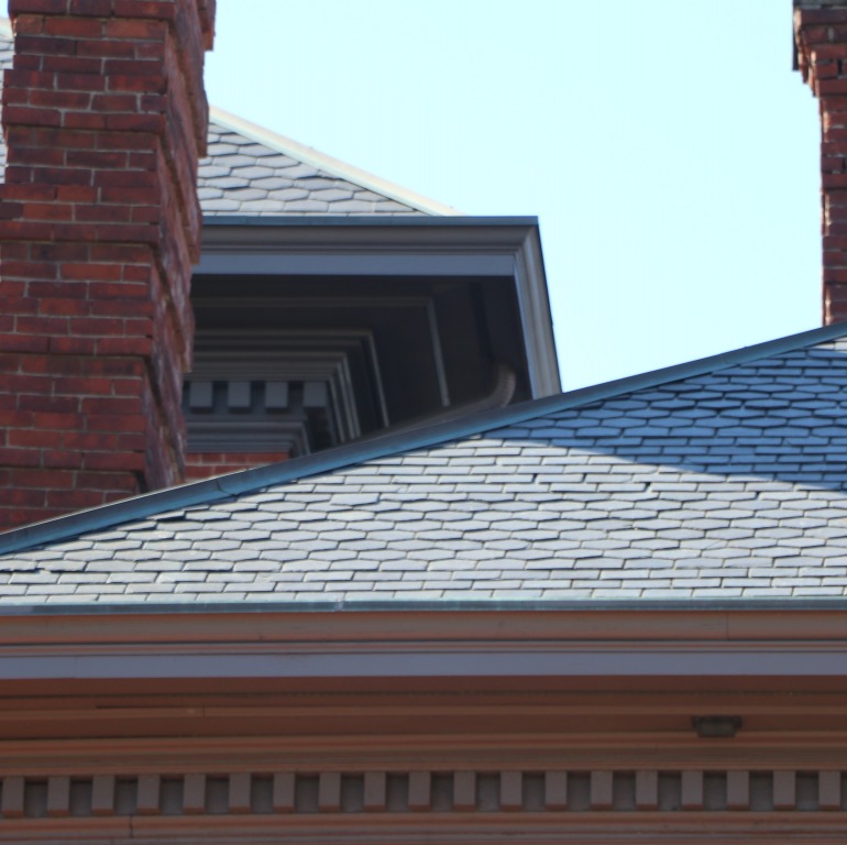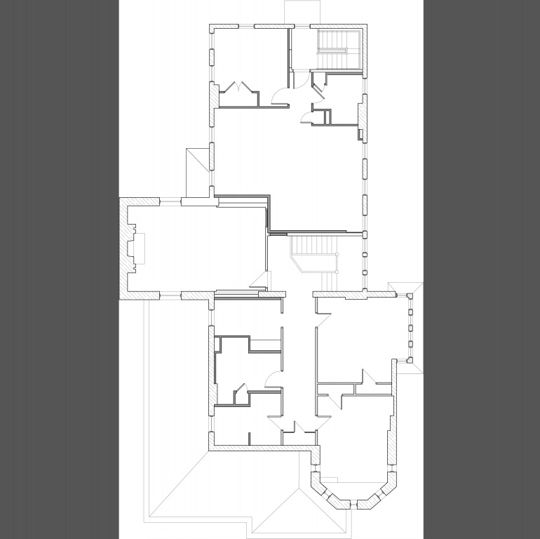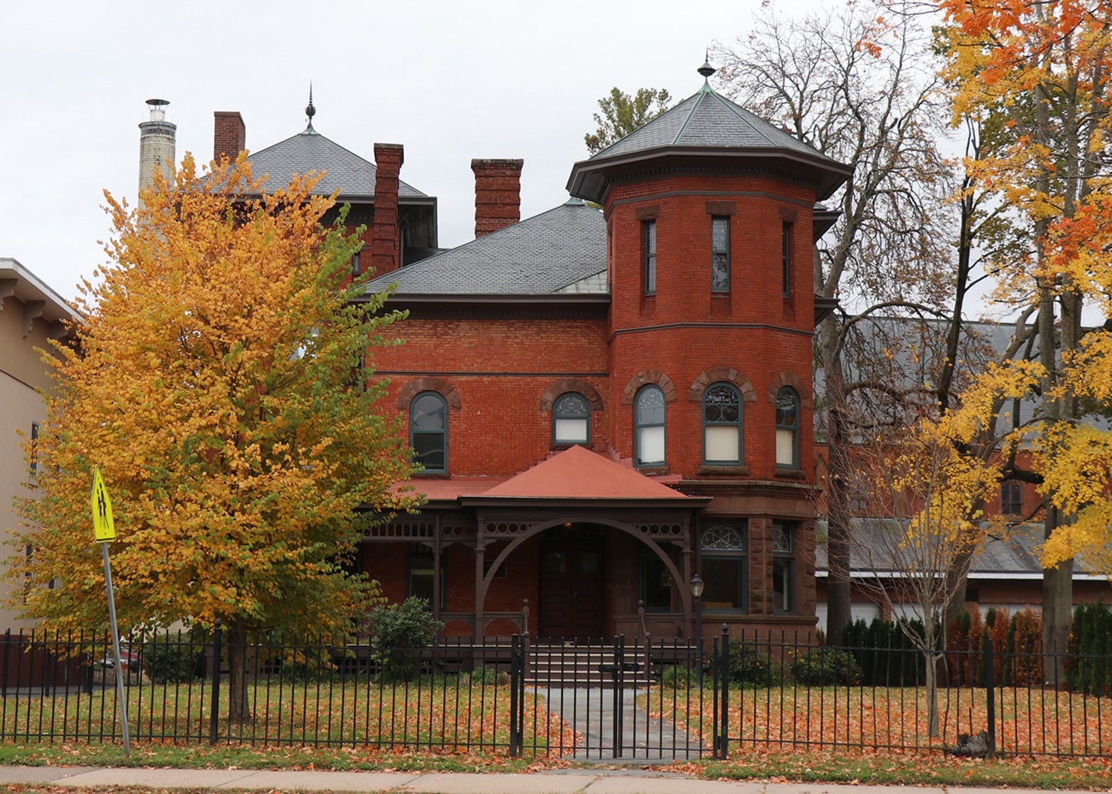 Ductwork for the HVAC system, second floor, future primary bedroom, owner’s unit; framing in east side parlor, first floor; new configuration, hallway, second floor, owner’s unit; framing and ductwork, second floor bedroom, owner’s unit; shower, bathroom in primary bedroom, second floor, owner’s unit; electrician’s ladder, billiard room, third floor, owner’s