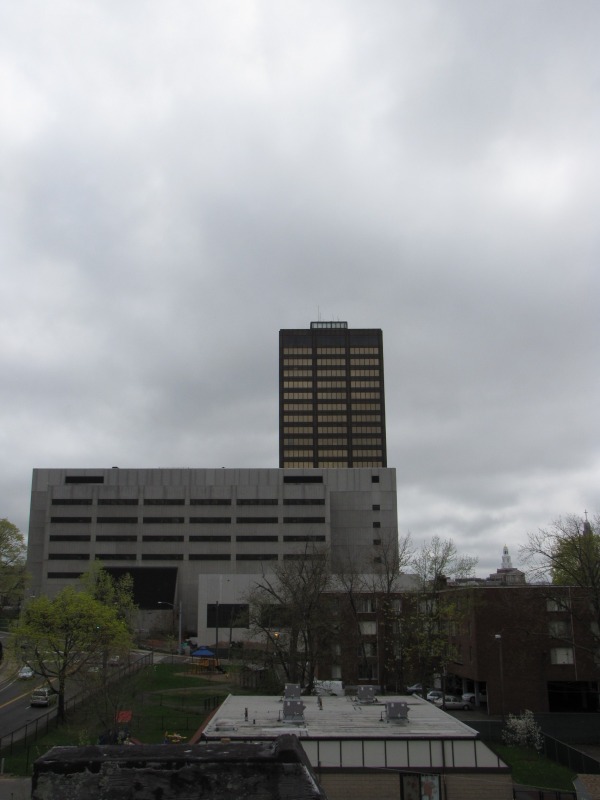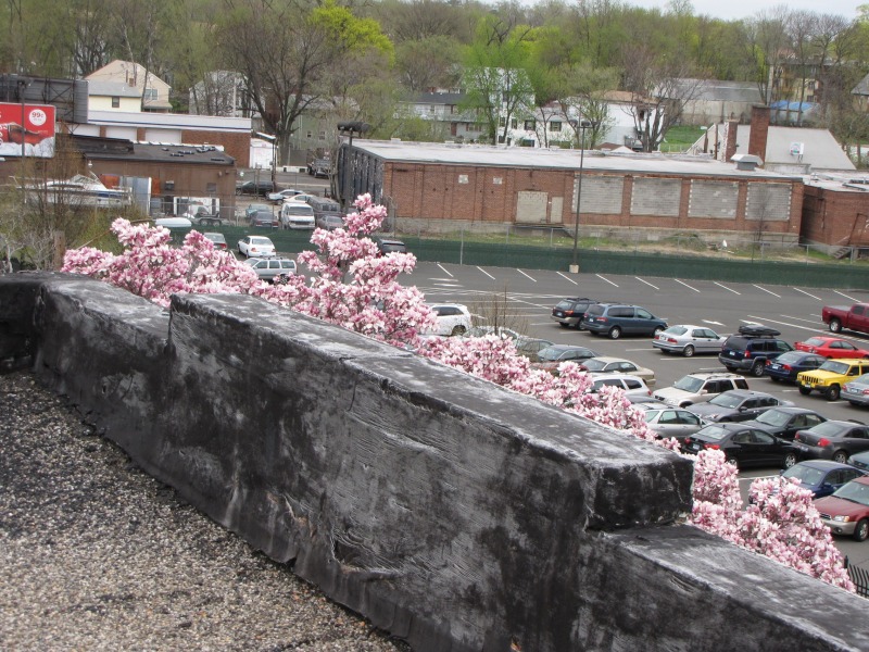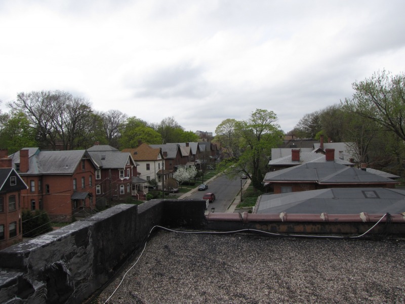 It’s remarkable how nice spring can make any location look good, even if it’s weedy and going to seed. Not sure what possessed me to go up onto the roof of this building, but the views were nice. The roof also let me spy on the work being done at 33 Sargeant Street.