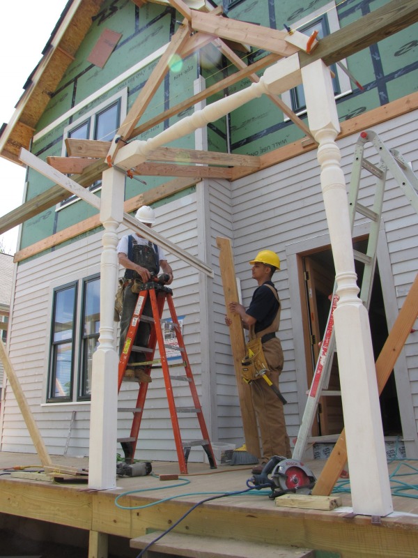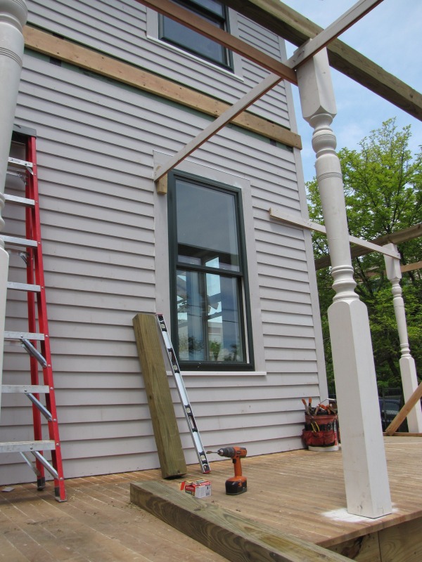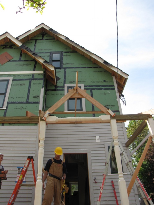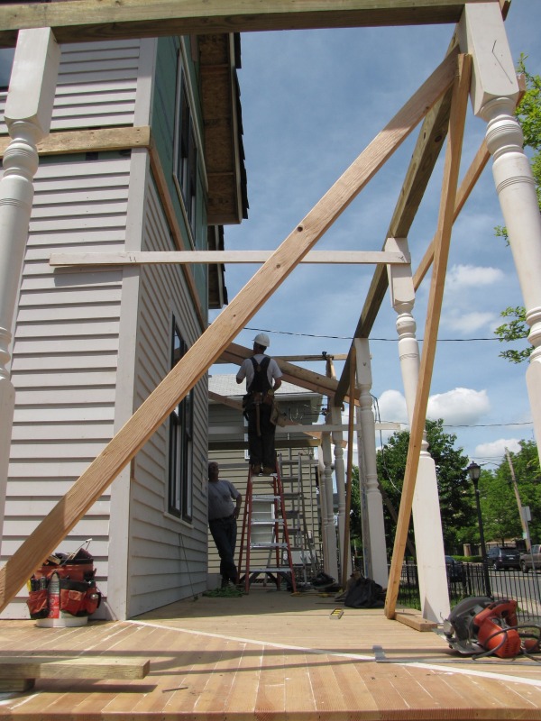 The porch roof taking shape.