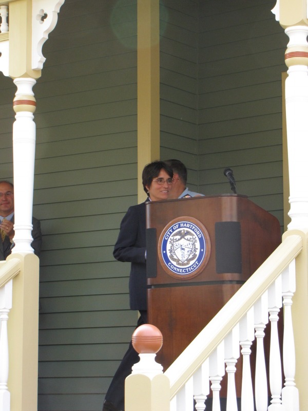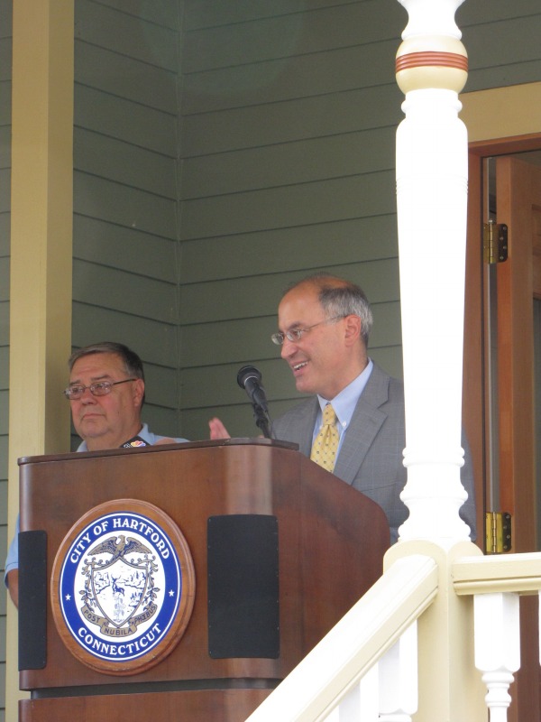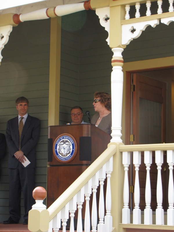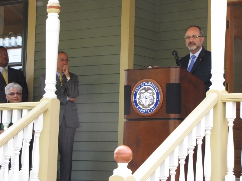 NINA and its partners celebrated the completion of the new home at 33 Sargeant Street with a ribbon cutting ceremony today. Lynda Godkin, board chair for NINA, led the ceremony. Speakers included Pedro Segarra, Mayor of Hartford; Dean Andrews, Senior Vice President/Hartford Market Manager, Enterprise Business & Community Engagement, Bank of America; Andrea Pereira, Executive Director, Hartford and Connecticut Statewide LISC; Rich Grobe, Executive Director, ServCorps; and Robert Yass, Vice President, Government Affairs, Hartford Financial Services Group. Bob is also a member of NINA’s board of directors.