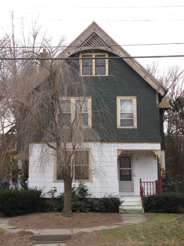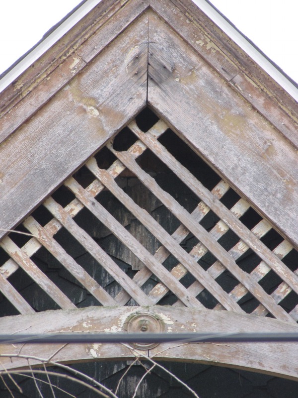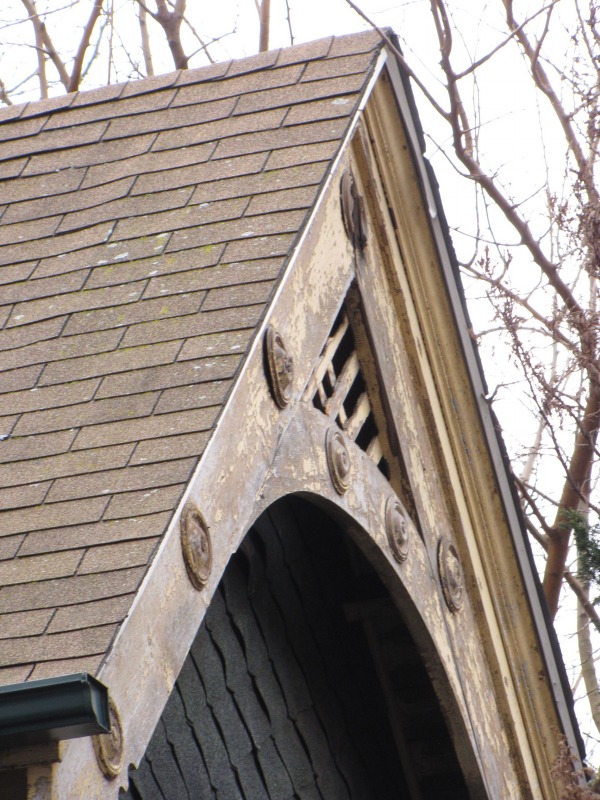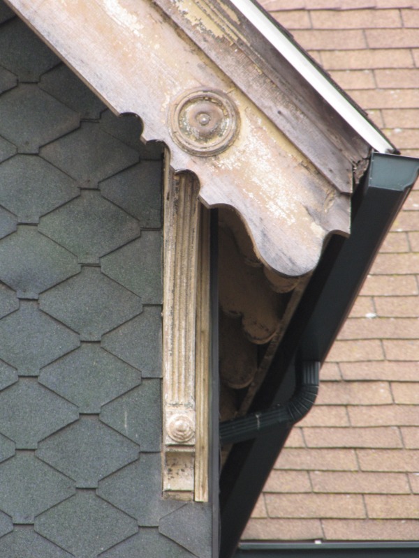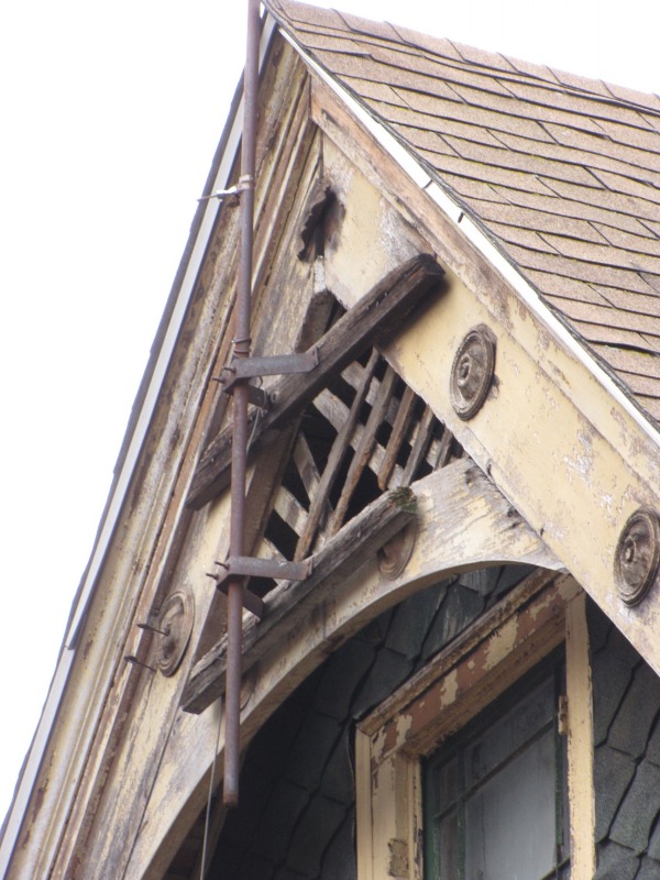 A closer look at the woodwork in the gables of 55 Ashley Street. It occurs on three sides of the house, and we will restore it.