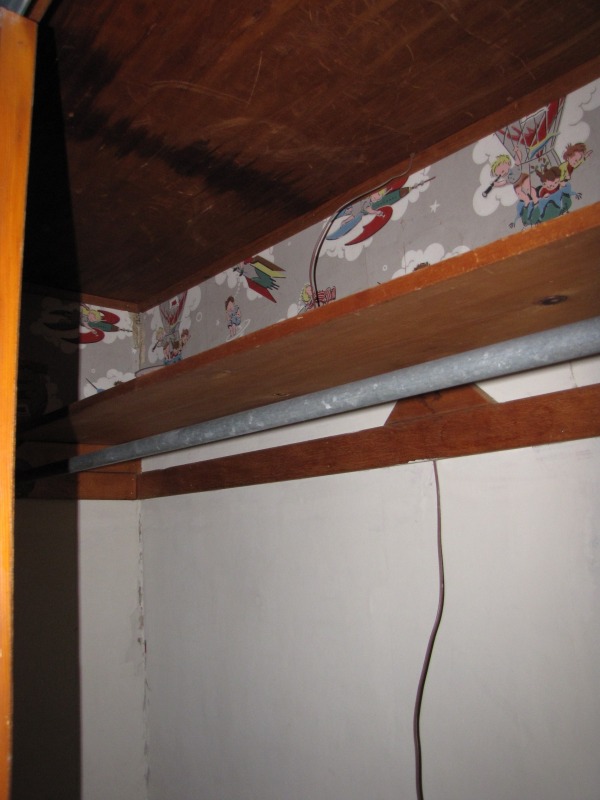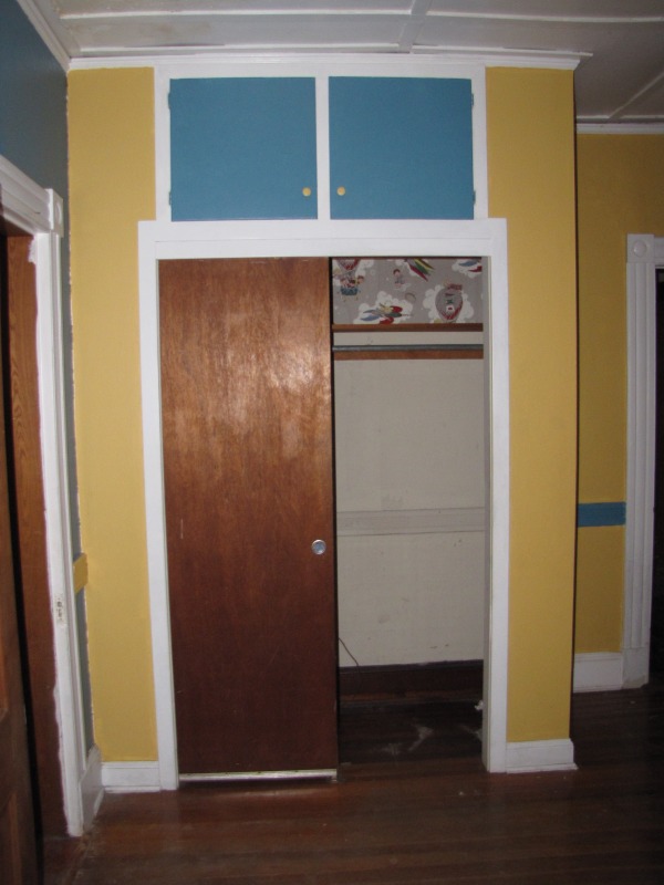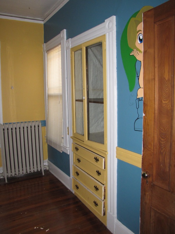A peek inside the original dining room at 55 Ashley Street, most recently used (probably) as a bedroom for a child.