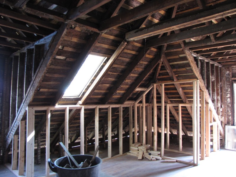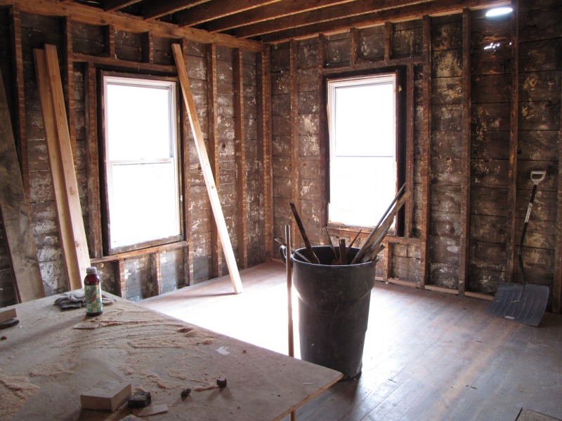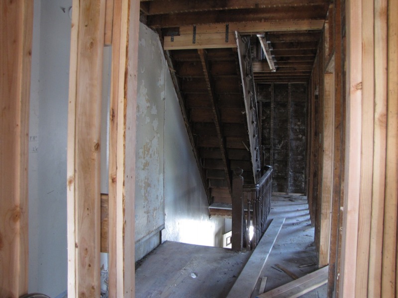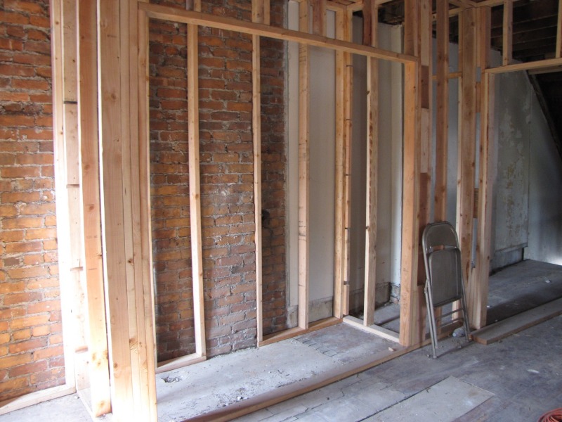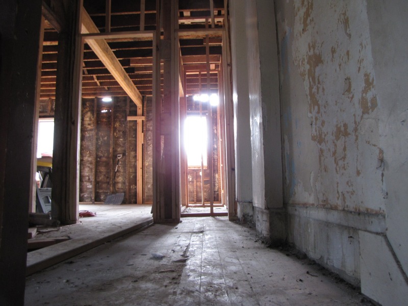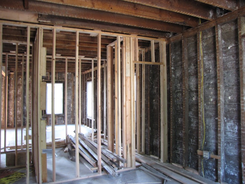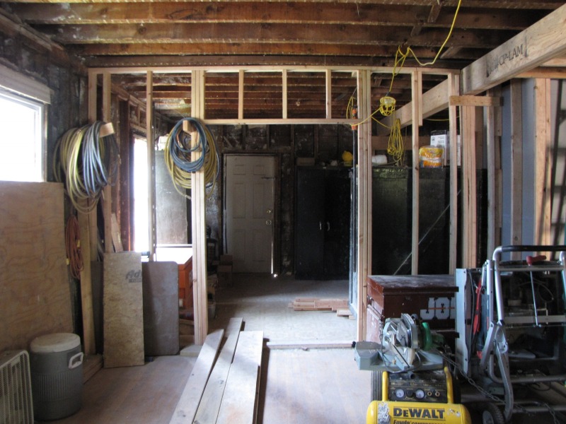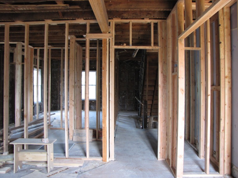 Interior framing -- the new flor plan emerges. Also, the porch and a peek around back.