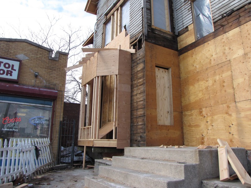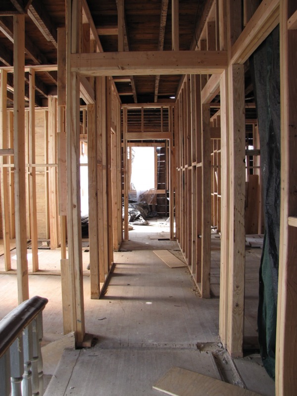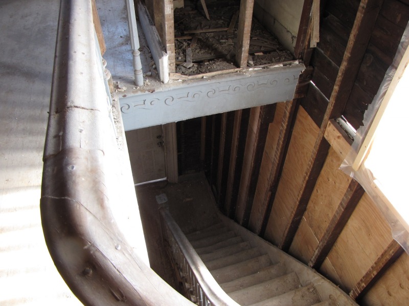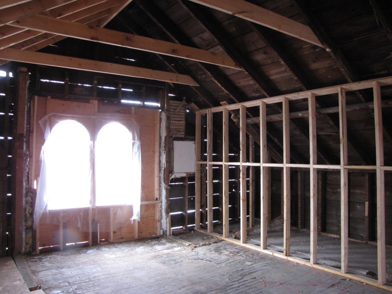 Not sure every photo is easy to follow, but the rooms are now in place. The most impressive shots, though, are up on the third floor, where you can get a solid sense of the work done to return the roof to original appearance. Also, some work around the outside, chipping away at the later additions that extended the house beyond its real footprint.