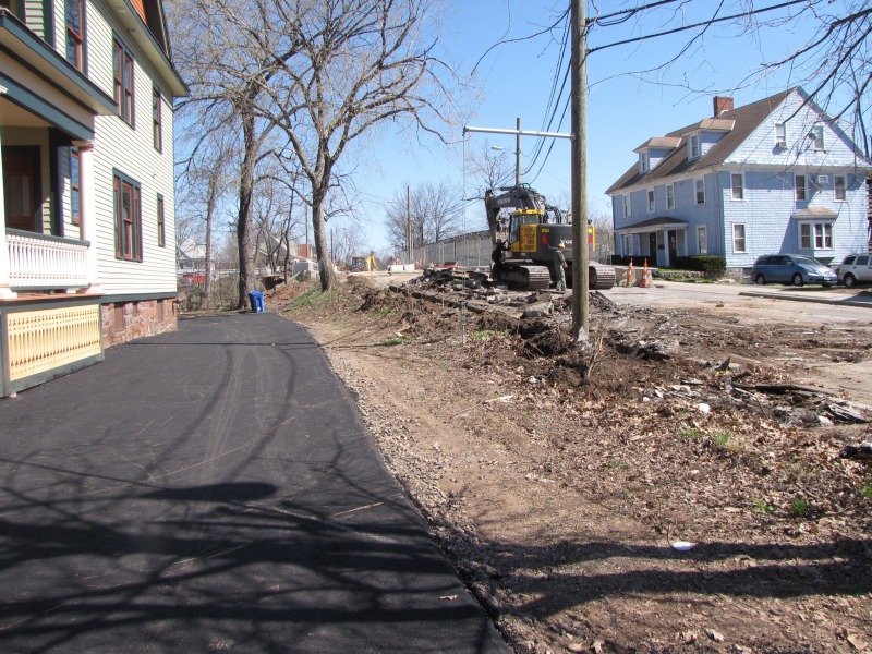 ConnDOT hard at work on the new bridge over the train tracks. At least 156 Sargeant will get a new fence out of the deal.