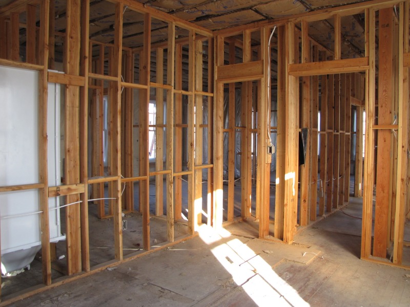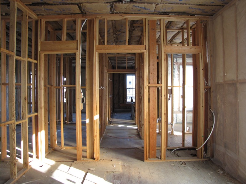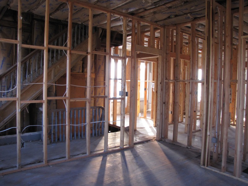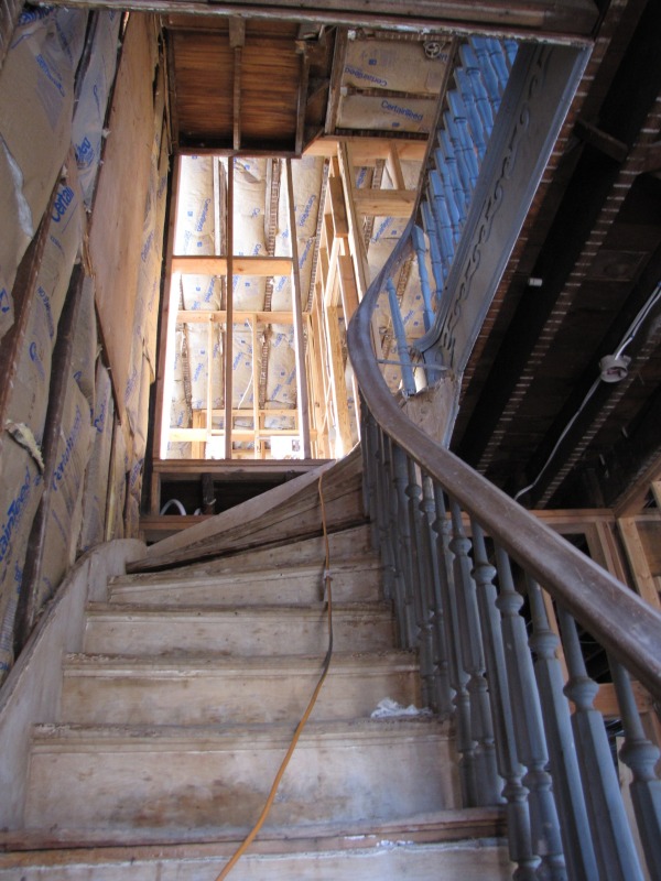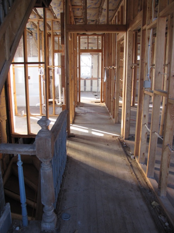 I won’t lie, I like the way the sun comes through the framing, especially on the second floor. Most of these photos are from the second floor bedrooms, but there’s also one looking into the kitchen and one looking up the main staircase. I also made it up to the third floor.