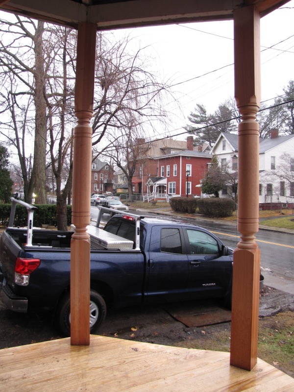 In case you’re wondering, two doors down from 51 the house is exactly the same design, with an intact front porch. We modeled our historic restoration efforts on that porch.
