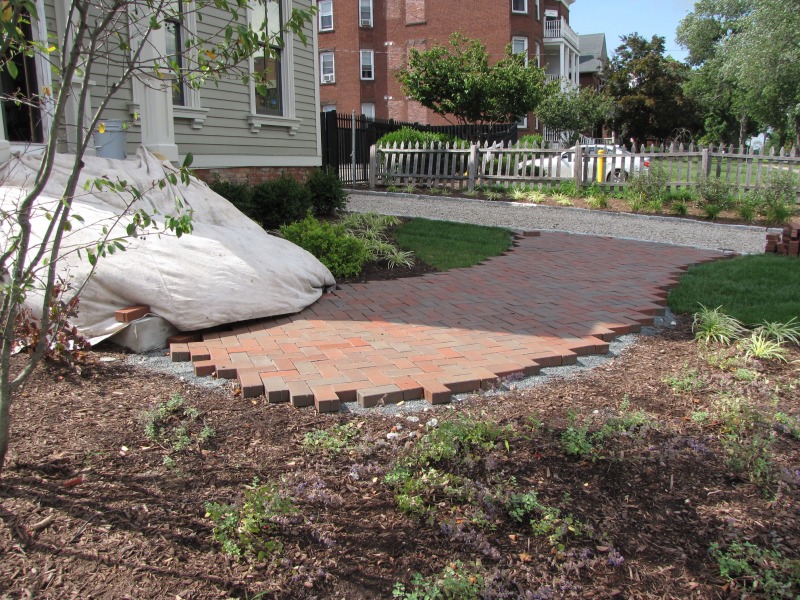 Our paving contractor started work on the front and back walks at 1 Imlay Street today. The design and materials were selected in consulation with the future homeowners.