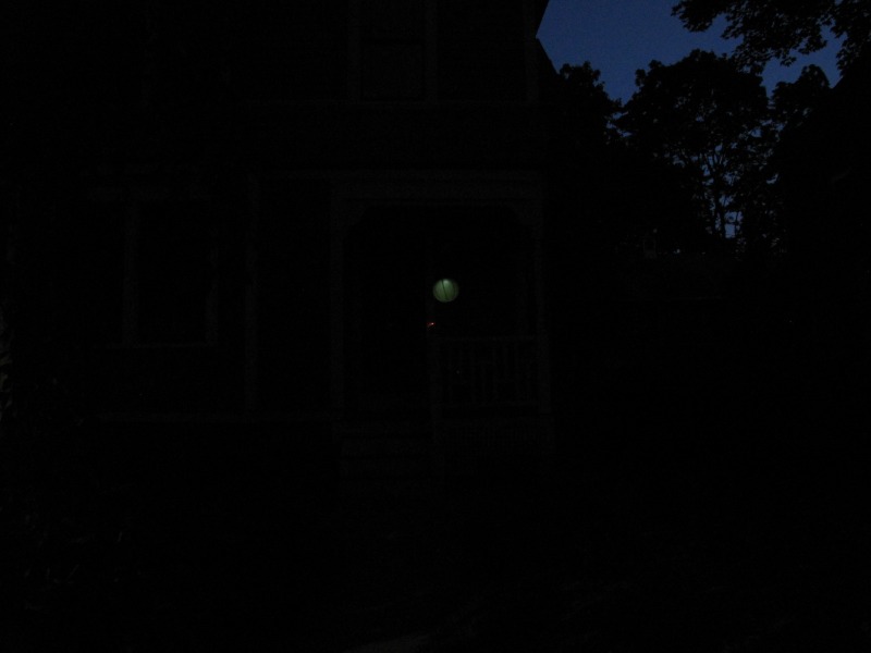 Oh, my, but our prospects don't look good! Tonight we had some friends and neighbors place our lanterns on their porches, which was a simulation of what they would've done on the first Illumination Night. Unfortunately, we're not using candles like they would have (or maybe that's fortunate!), and the environmentally friendly LEDs we're using just aren't producing the lumens we were hoping for. Ah, well, we're in for the event now, no matter what!