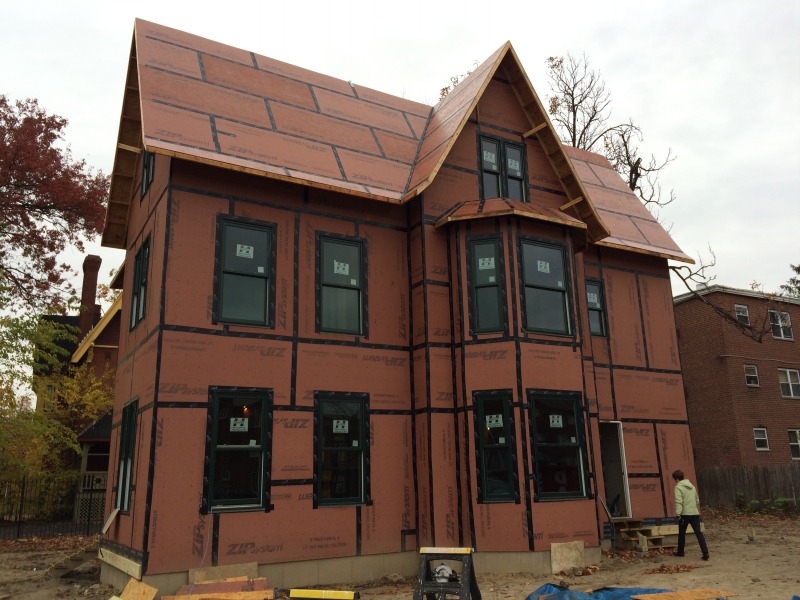 A view of 54 Huntington Street ready for the exterior finish to go on, top to bottom.