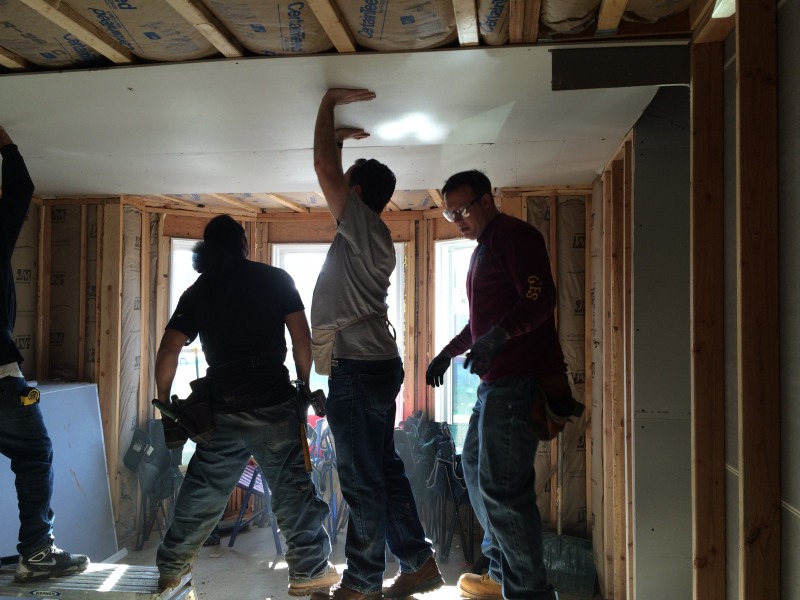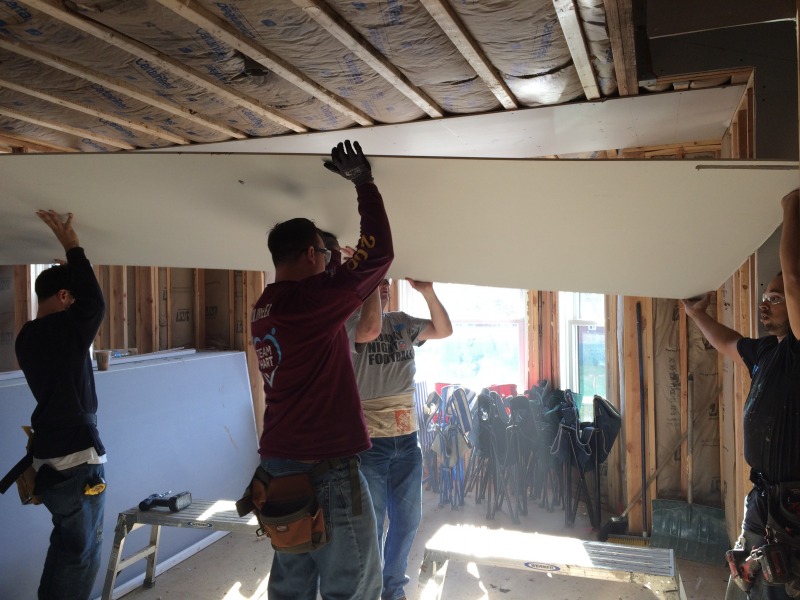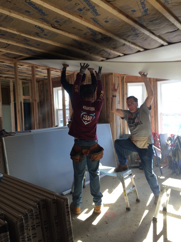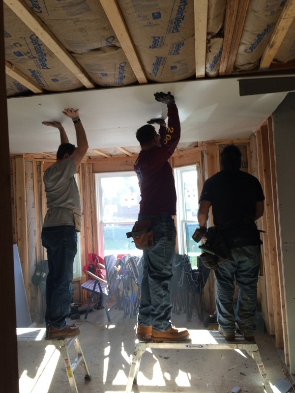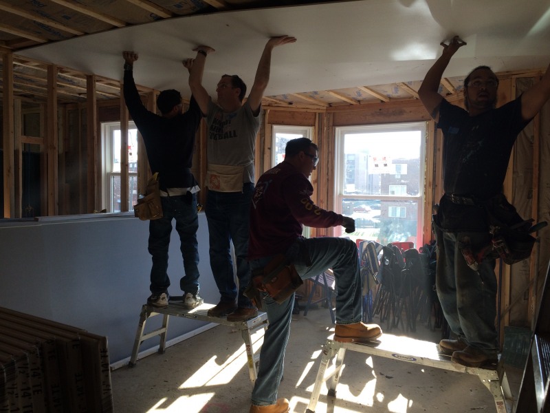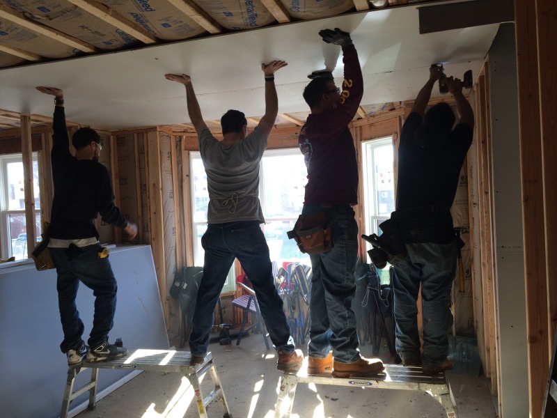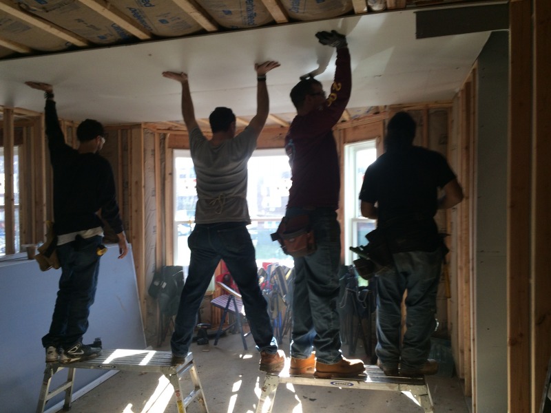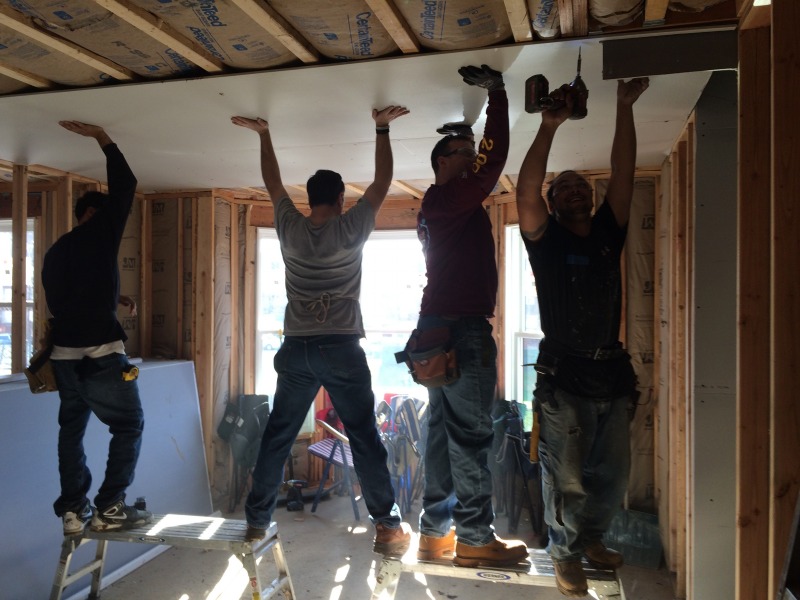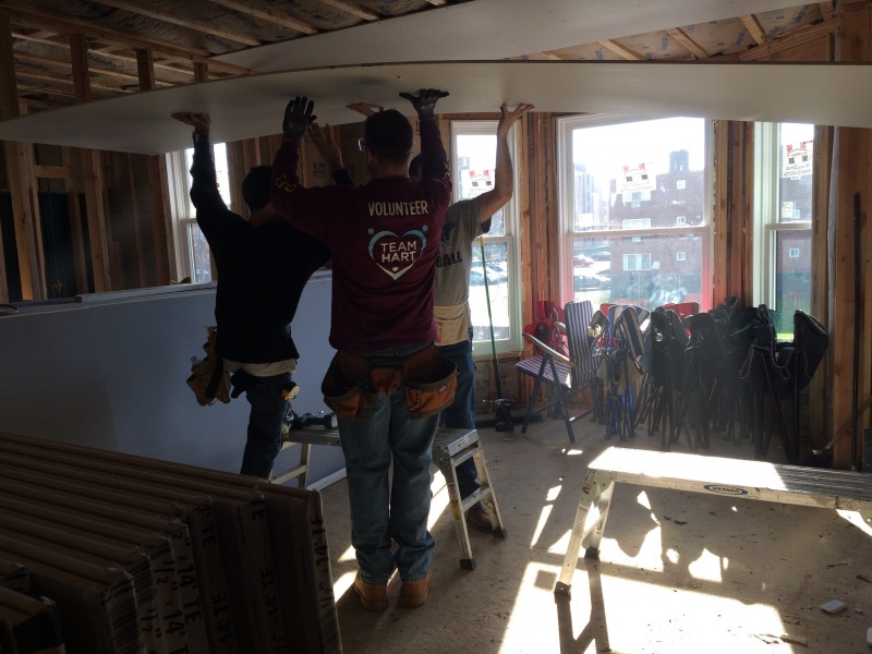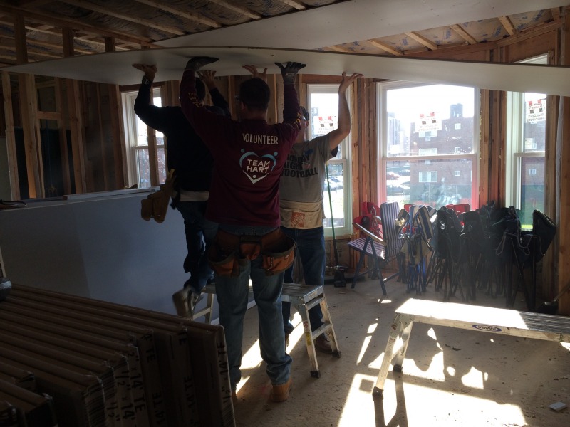 A group of volunteers from The Hartford came down today to help out with hanging drywall at 54 Huntington Street. They were members of Andy Daly's team, and Andy is a member of the NINA Board of Directors.