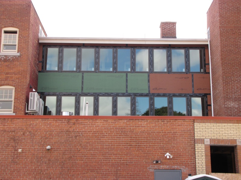 The elevator corridors on the 2nd and 3rd floors have taken shape, and now we're adding brick to the facade.