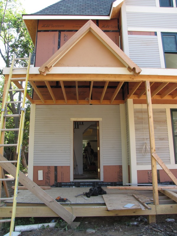 The front porch is shaping up nicely. A few glimpses inside as well, and a look at the back porch, too.