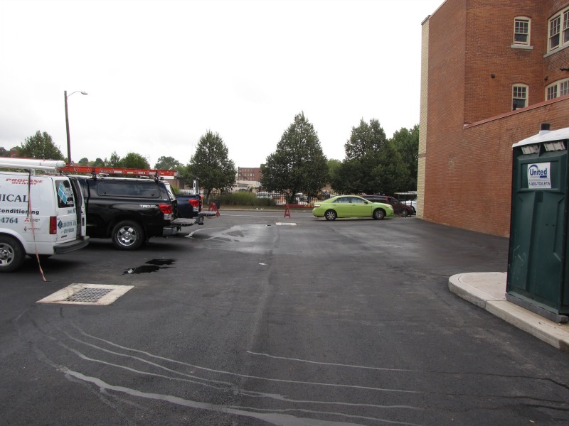 And then views of the newly paved parking lot. The building is really coming together now!