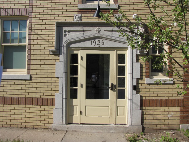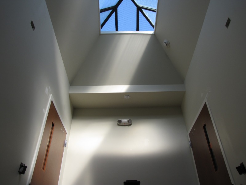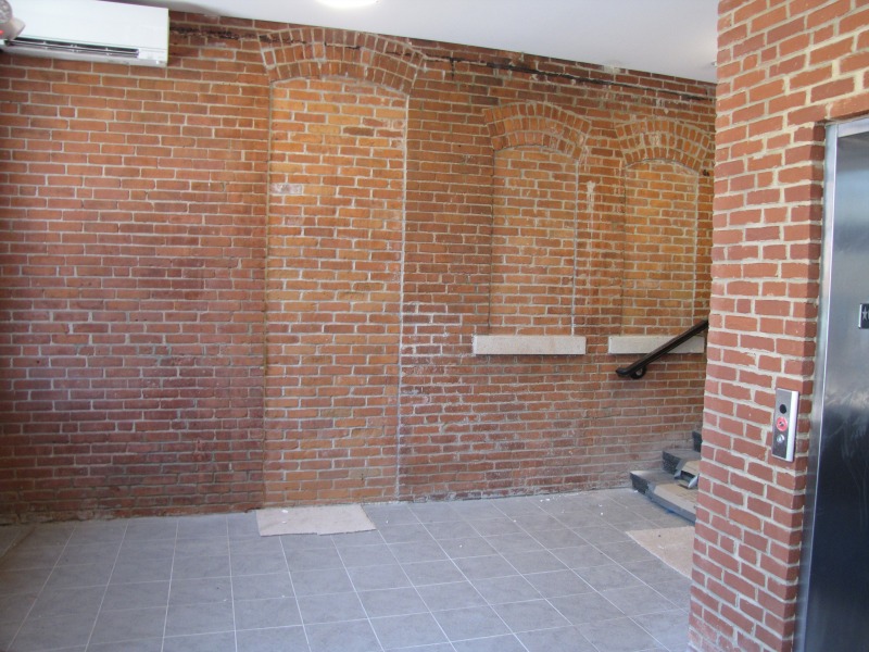 The Ashley Street entrance with new light. The back entrance to 207 Garden Street with new light. The elevator lobby. The third floor staircase with skylight.