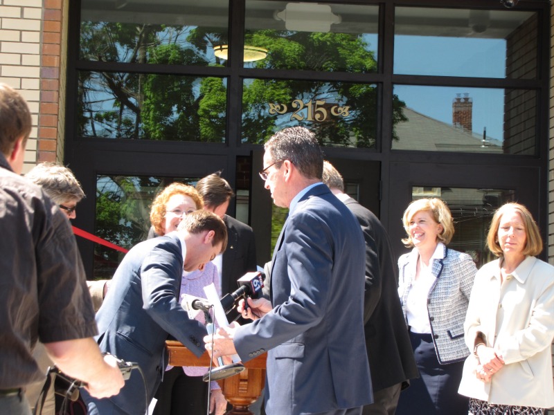 We did have one small snafu: the podium was initially placed in a less than ideal location for the news media. Fortunately, Governor Malloy drafted Mayor Bronin and Representative Ritter into action, and we had the problem solved quickly!