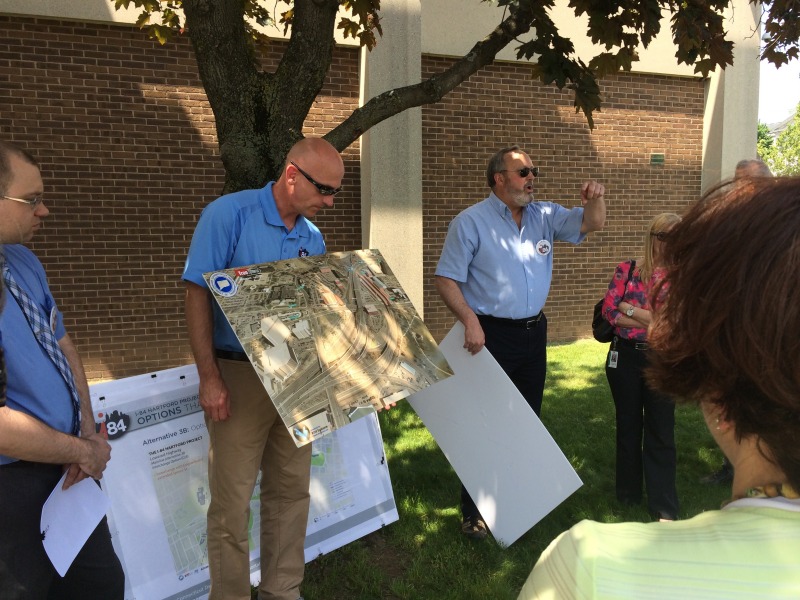 This week, representatives from DOT led us on a tour of planned and proposed changes to the Interstate 84 Viaduct. The viaduct, which is the elevated portion of the highway as it runs through Hartford, forms the southern border of Asylum Hill, and it’s one of the most important access points for both The Hartford and for Aetna. This tour was arranged to answer any questions people might have about just how miserable their commute may come when the work gets started.