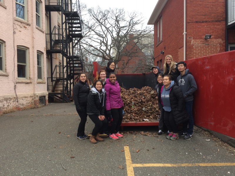 A group of students participating in Trinity College's January Experience of Living, Learning, and Outreach (JELLO) volunteered today at 115 and 117 Sigourney Street. Work included cleaning up the site, inside and out, and making the whole place look presentable.
