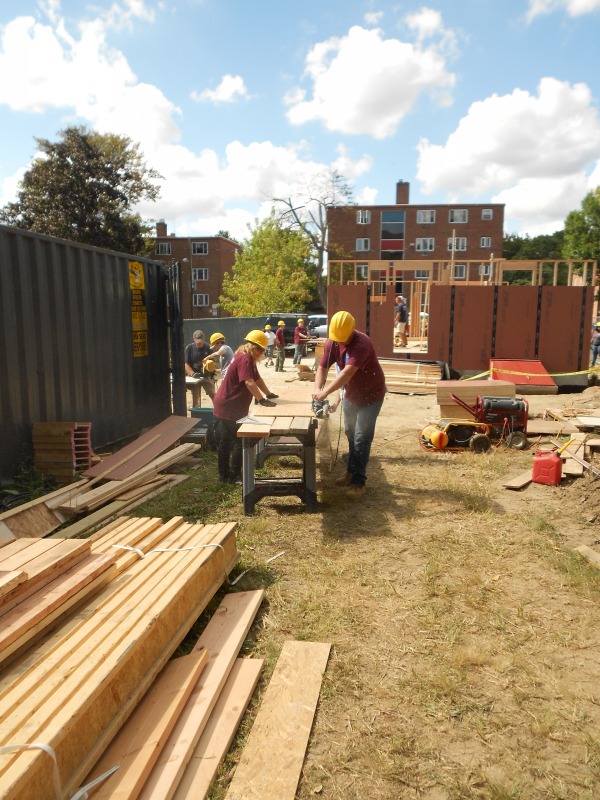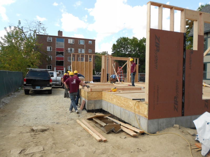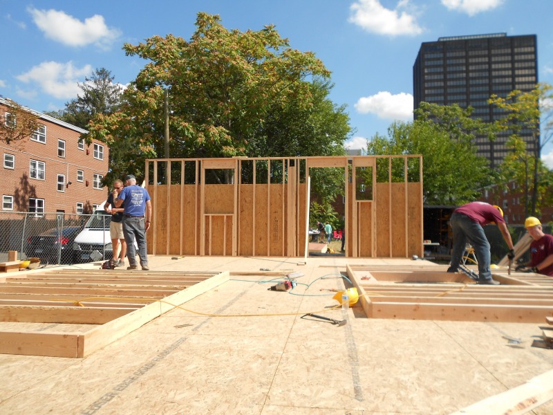 We had a good group from The Hartford today. Led by Andy Daly, who is Assistant General Counsel, Lead Counsel Contracting Center of Excellence and President of NINA's Board of Directors, 16 employees from The Hartford (plus one from Travelers) raised all of the walls on the first floor of the house.