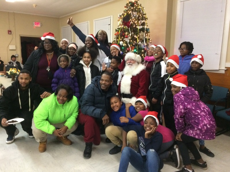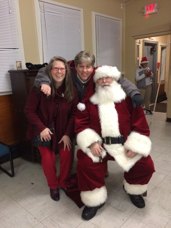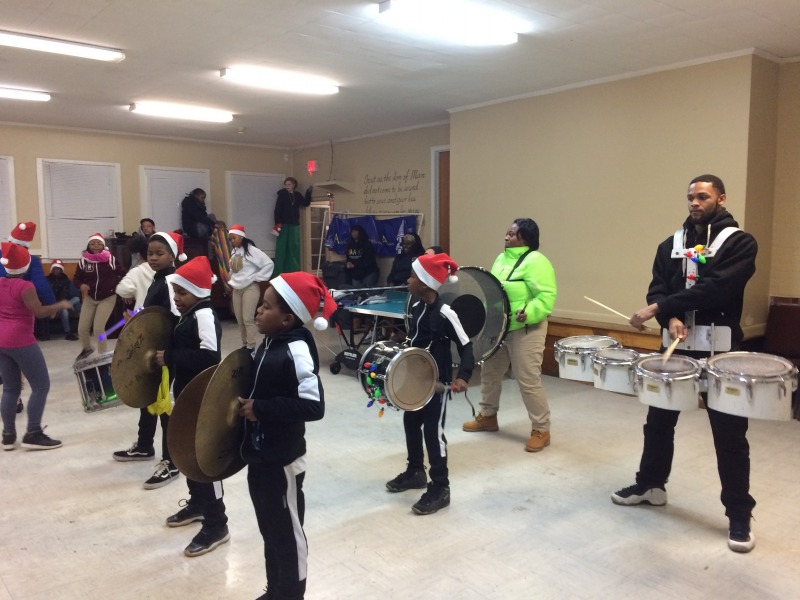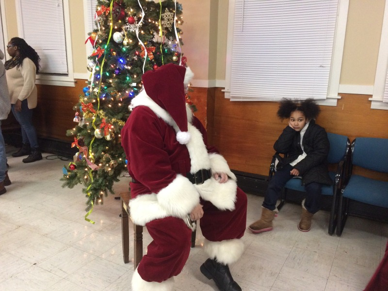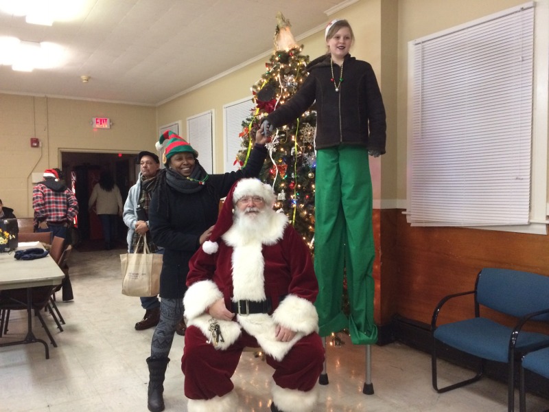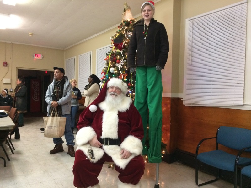 I think this is the first time we’ve had snow on the ground for Caroling in the Park, which was a very nice touch. We started per usual at the “North Pole” (aka Veeder Place), where Santa climbed into his “sled” (a fire truck from the Sigourney Street Station) before heading over to Glory Chapel for hot chocolate. Still not sure what to make of the elves on stilts. Entertainment was provided by Hartford Proud Drum and Drill Corps.