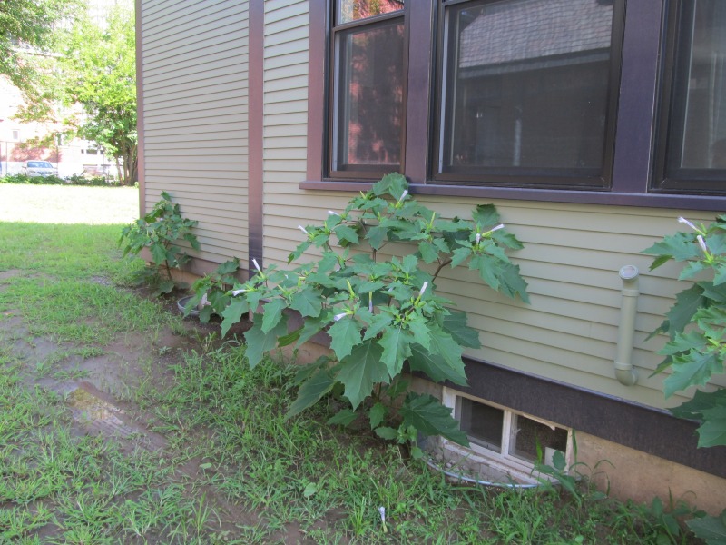 These plants just sprang up. We liked them, plus there’s an old 4-H ethos that you never, ever kill a plant, so we’ll leave its fate up to the new homeowners. However, when we took a look at the seed pods, we sort of kind of wondered if that was the best idea …