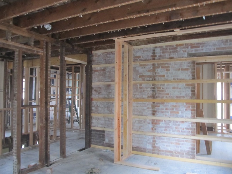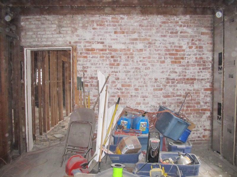 We're moving along steadily at 115 Sigourney -- the new floor plan is beginning to emerge, especially on the second floor. Shots here include a look at the future kitchen, future dining room, future north and south parlors, and a last look (probably) at the past staircase to the second floor. Some fun items to note, both in the north parlor, include the pockets we uncovered where there were once French doors and the brick interior wall, which once upon a time would have been the front exterior wall of the house. The doorway there could well have been the location of the original front door of the house!