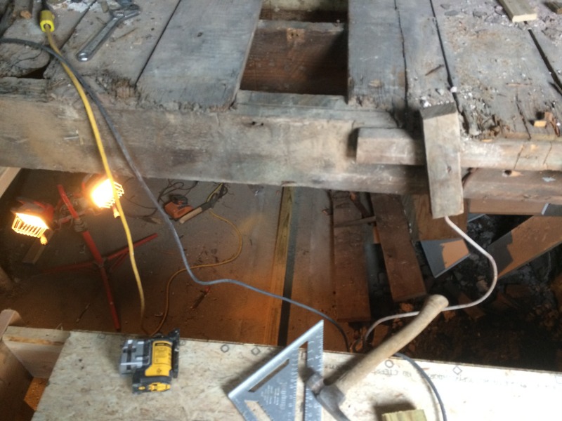 That's Matt Pearce looking back at us from the basement. He's building the new staircase for us.