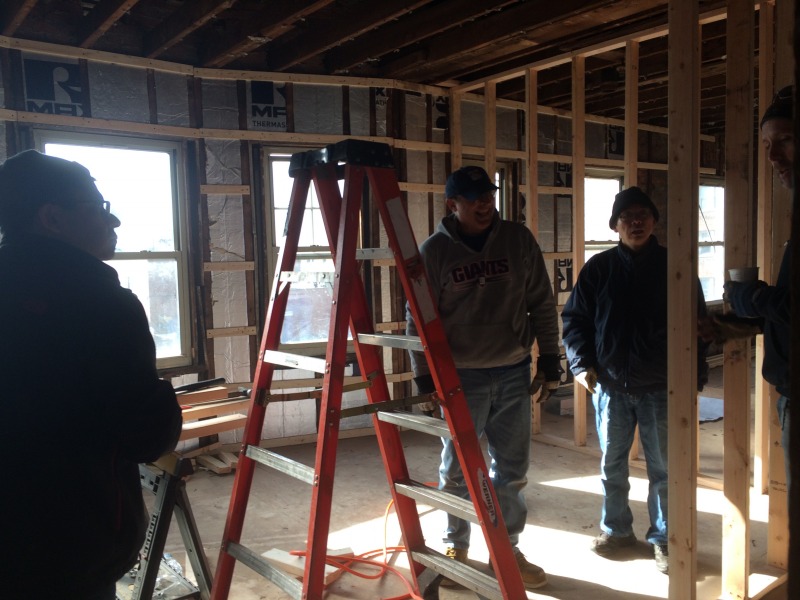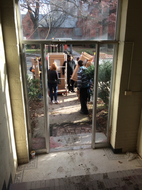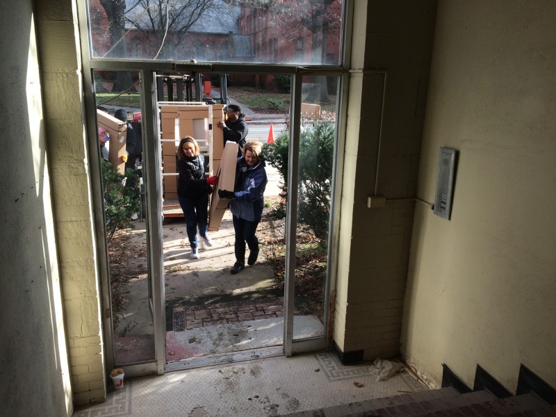 A group of volunteers from The Hartford's IT section came in today to help out on 117 Sigourney Street. They helped out with removing nails and hauling in the new windows, which arrived this morning.