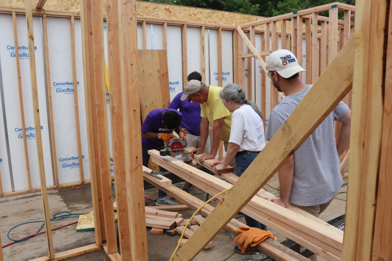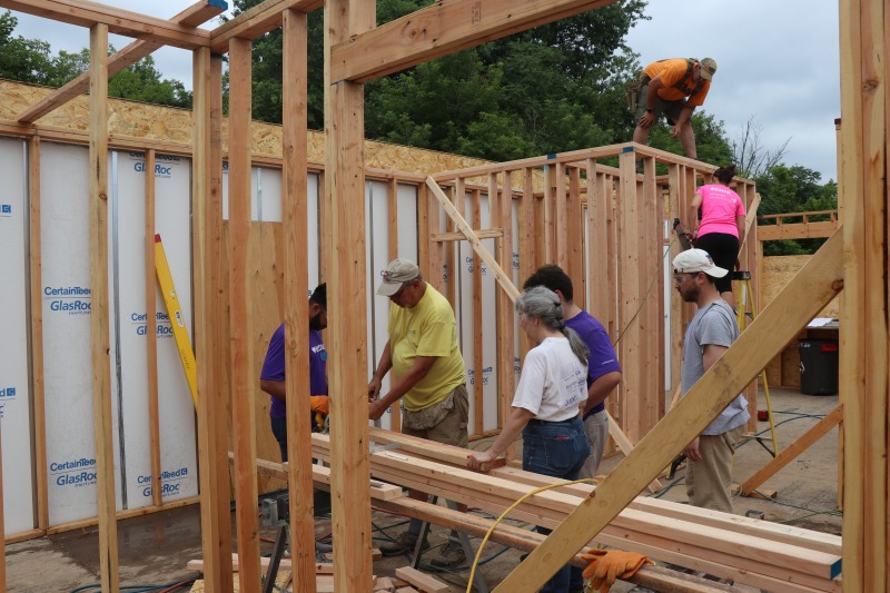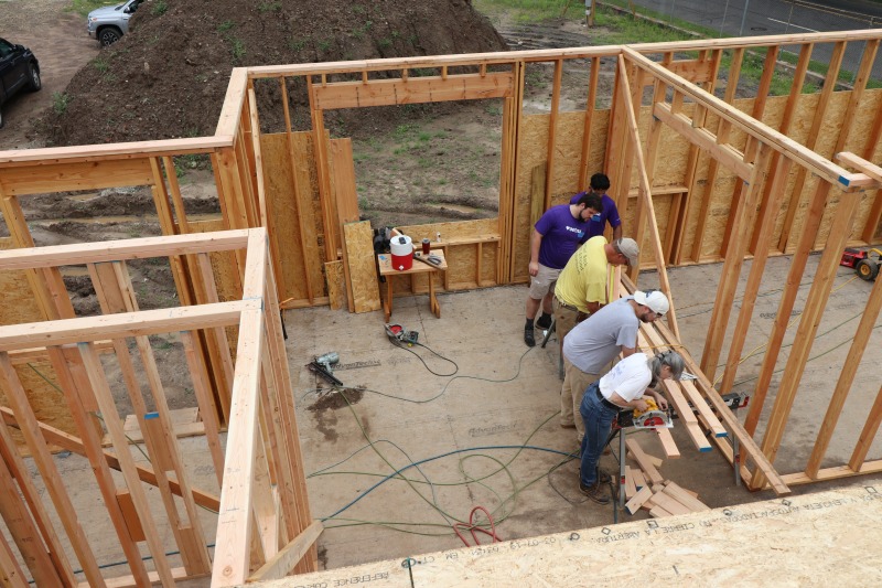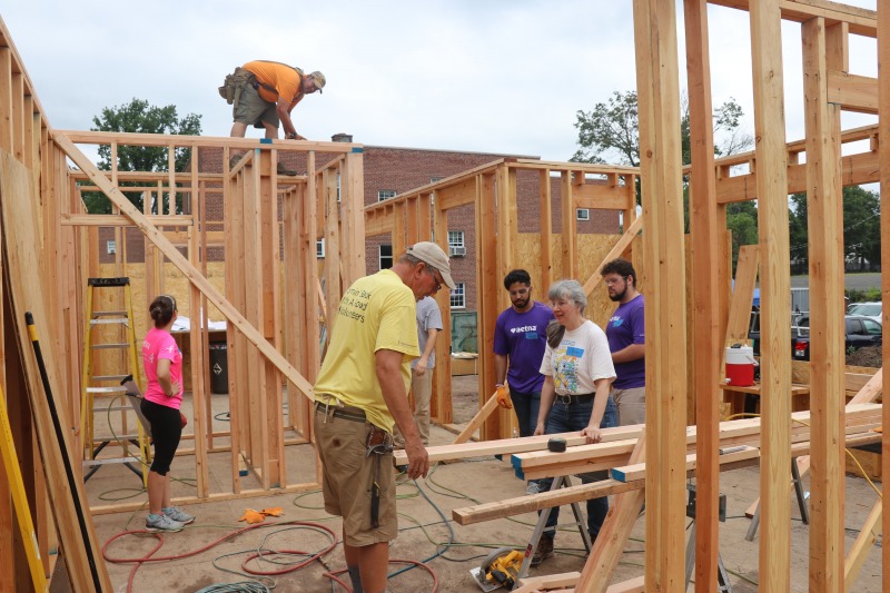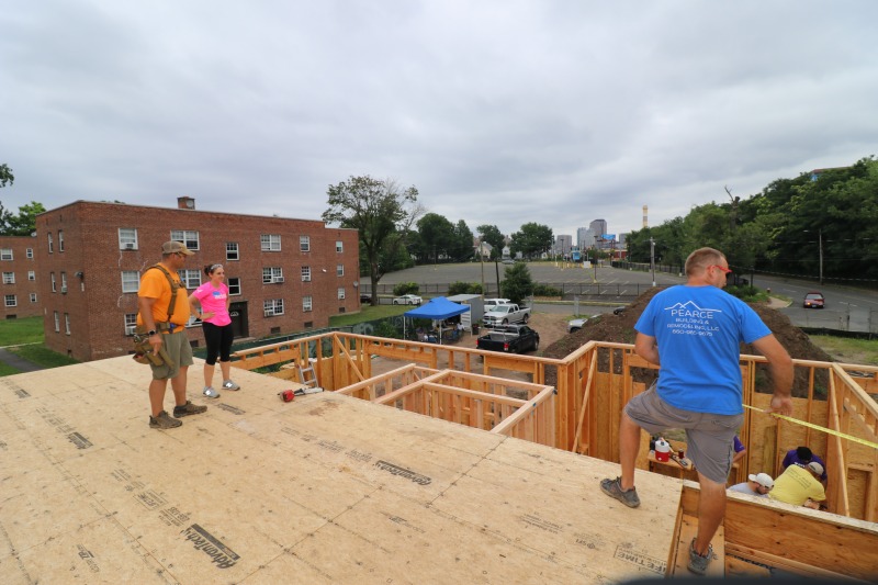A group of volunteers from Aetna worked at 86 Hawthorn today, helping to finish framing the first floor and starting to work on the second floor.