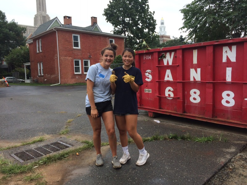 We had our annual group of Trinity College freshmen volunteering today at all of our project sites. These two students were at 115 & 117 Sigourney, while the rest were down on Hawthorn -- and yes, I was too lazy to go down and get a group shot.