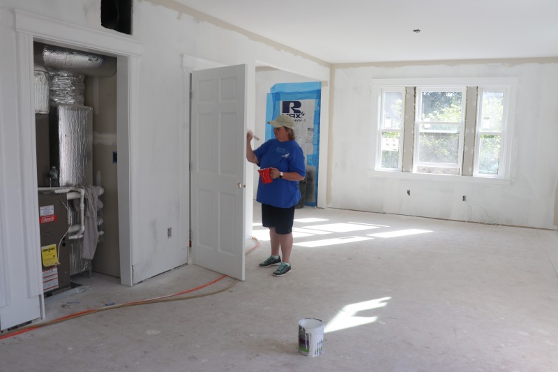 We really lucked out this year! This was our third group from The Hartford as part of Day of Caring. The Hartford is committed to community service, and it gives its employees the opportunity to volunteer for Day of Caring as fits their schedule. This has been a tremendous boon for NINA over the years, as every volunteer helps us to keep our homes affordable for their future owners.