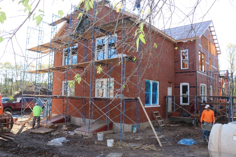 A very busy day at 86 Hawthorn. Along with the windows and the bricks, the new water line is also being installed.