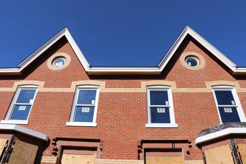 The masons finished up the front of the house, and it looks pretty darned good. The site is a godawful muddy mess, though – which is why there aren’t any photos of it here!