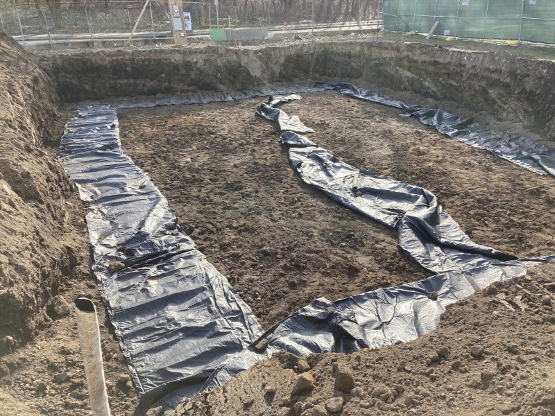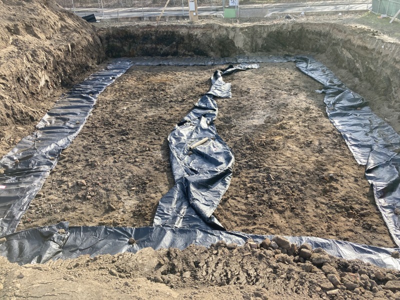Prepping for the foundation. You can now get a sense of where the houses will be in relation to their surroundings.