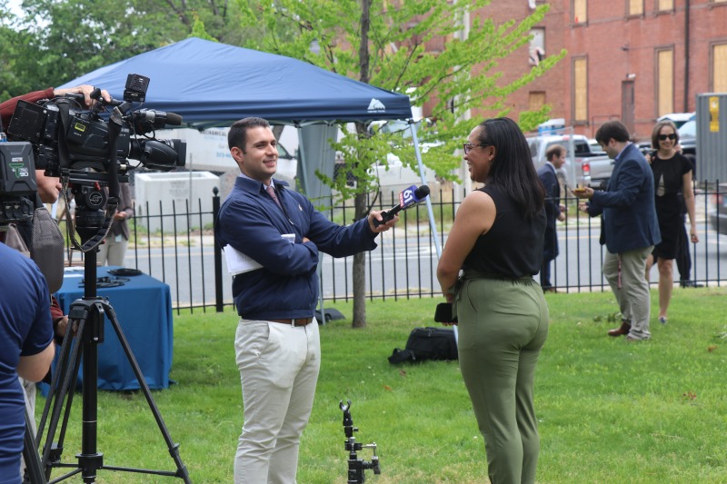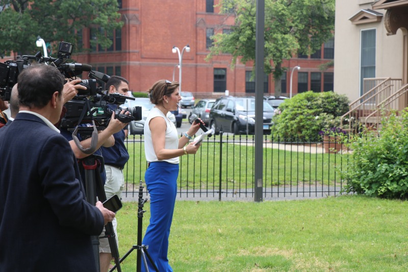 Caitlin Burchill of NBC Connecticut asking a question – and her story on the event