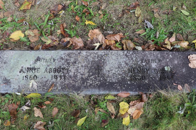Henry Green – three of his children and one daughter-in-law are buried with him and his wife Annie. His children all lived into their 70s, and his daughter-in-law, Grayce Morgan, lived into her 100th year, dying in 1998.