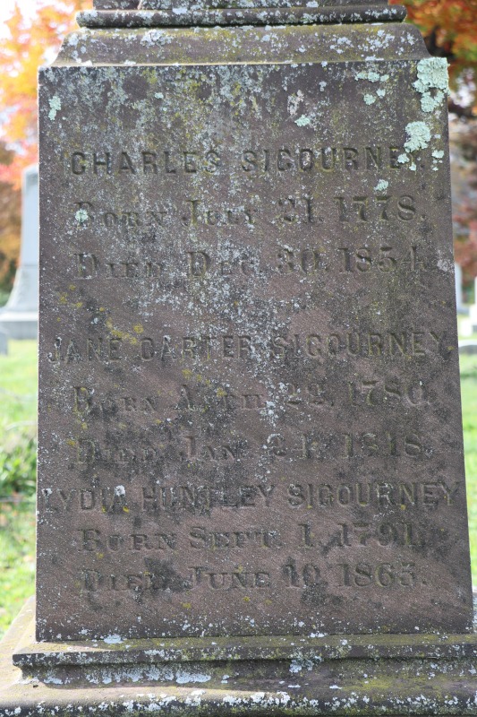 Lydia Sigourney – she of the square park, and she was not Charles Sigourney’s first wife. That would have been Jane, who died in 1818. I’m sure this is well-known, but it was news to me.
