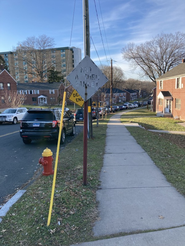 It got even worse when I went down Woodland Drive. Ashley Street will be next, but before that we’ll be talking to Hartford’s Department of Public Works about signage and how it’s replaced. I’m also wondering why Woodland Drive, an entirely residential cul-de-sac marked in a couple of places to drive slowly and to watch out for kids, has a speed limit of 25 miles per hour.