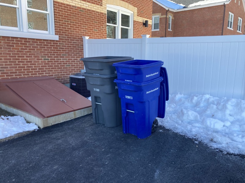 I dropped by 80 Hawthorn today and was very pleased to see that our new trash and recycling carts had arrived. We apparently got very lucky that we put in our request for them when we did: word on the street is that these carts are in increasingly short supply because of national supply chain issues. These carts are for both 80 and 82 Hawthorn.