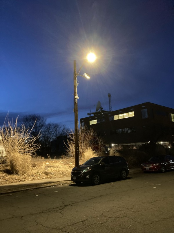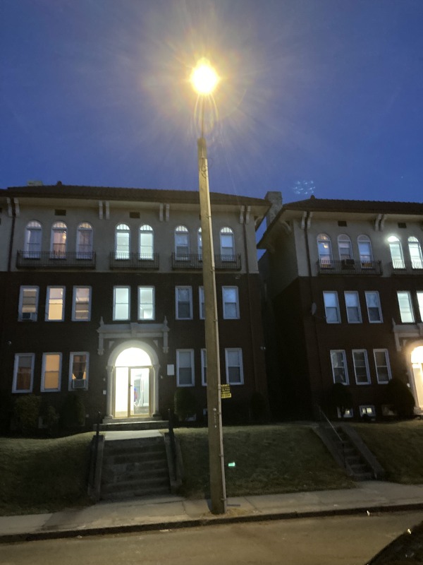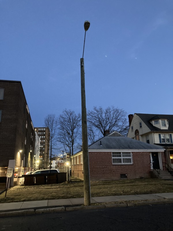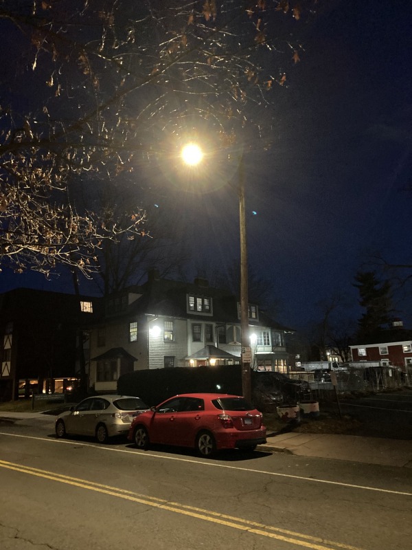 36 lights, 2 out, plus the broken light that created a dramatic spotlight for the sidewalk.