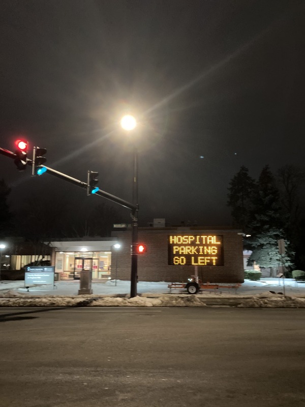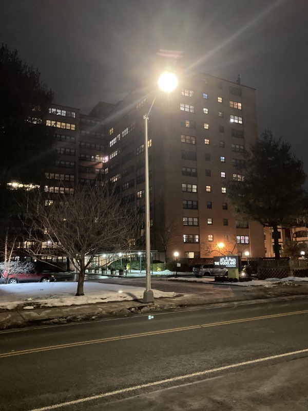 Woodland Street is the spine of the hospital district, and it is very bright, with or without the streetlights.