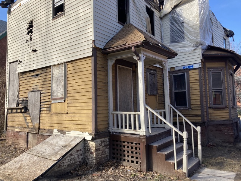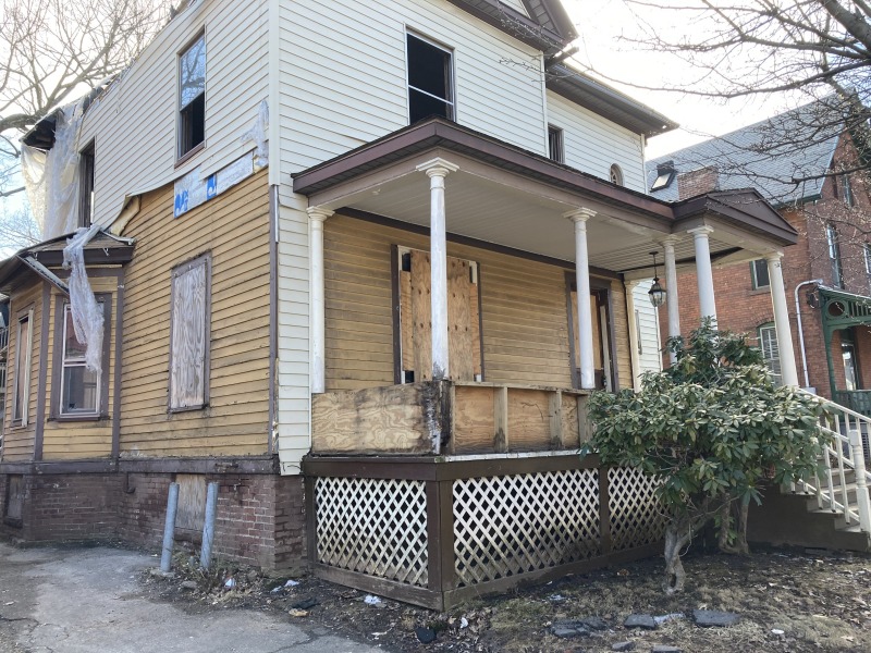 The aluminum siding has started to come down, and now there's a view of the wood clapboard beneath. Likely this is from the 1970s renovation of the house - gold was a popular color then, along with avocado, and I think I'm glad they picked gold (okay, mustard) over avocado.