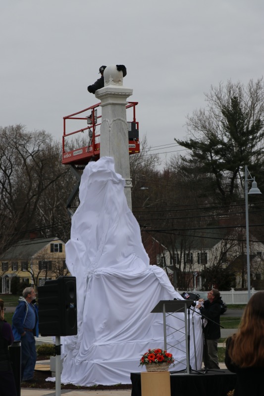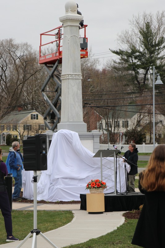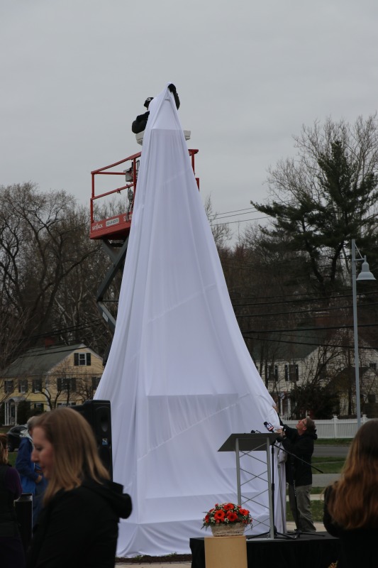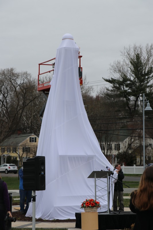 Today, the American School for the Deaf held a ceremony to unveil the Gallaudet Memorial on their campus on West Hartford. Jean Linderman, who serves as the school's historian, invited me to attend -- she and I have been working together on the school's history on the Hill-- and today's ceremony was a very special event. The memorial, which had previously stood in front of the school's main building in Hartford, hasn't been seen in public since the school moved to West Hartford in 1921, so when the pulled the cover off of the memorial it was the first time it had been publicly displayed in over a century! Some more details will follow in subsequent posts, but it really was a thrill to be there today.