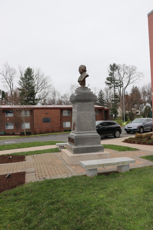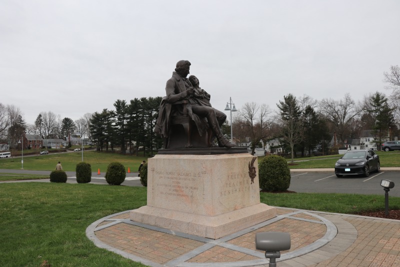 While I was there, I took some shots from around the campus of the American School for the Deaf. These include shots of the bronze sculpture of Thomas Gallaudet that replaced the original Gallaudet Memorial, a memorial to Laurent LeClerc, who joined Gallaudet in founding the school, and the Cogswell Heritage House, home of the school's museum and archive.