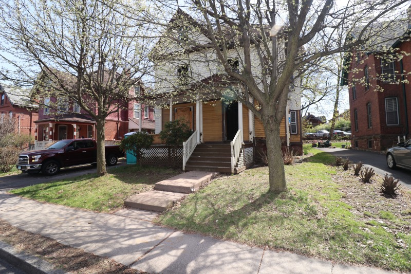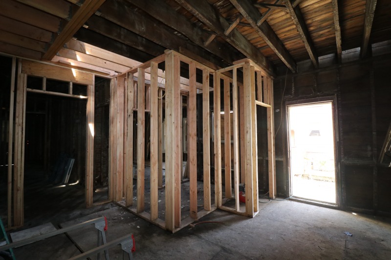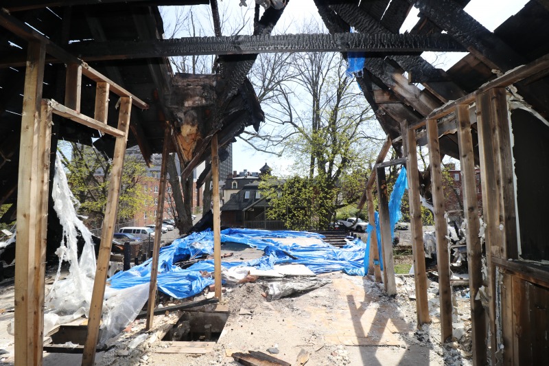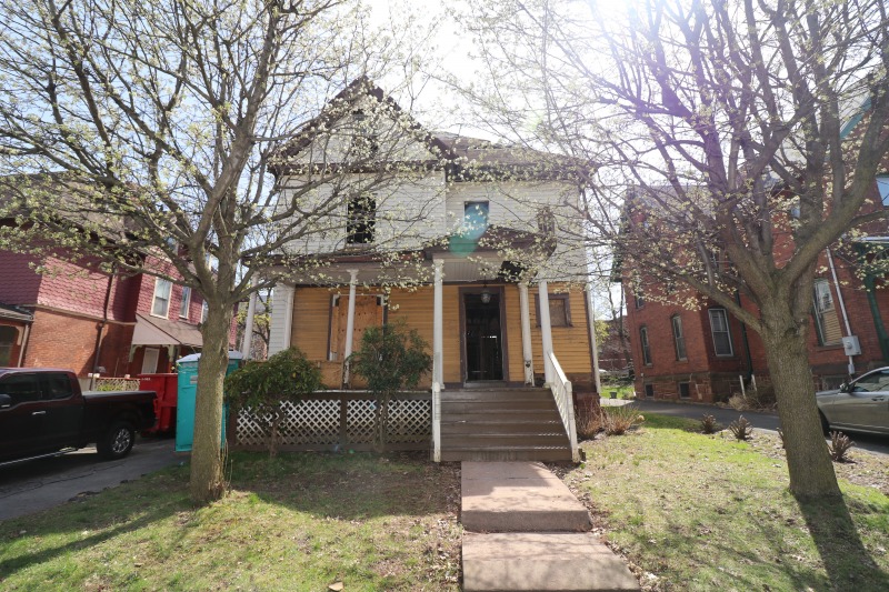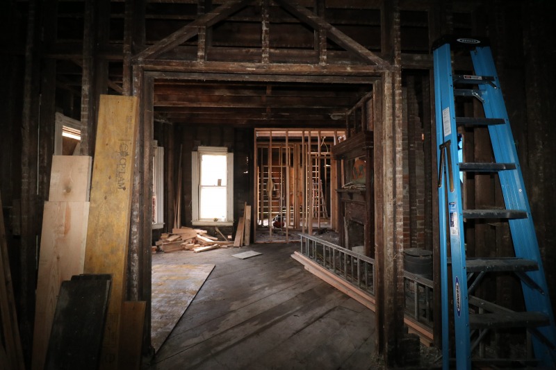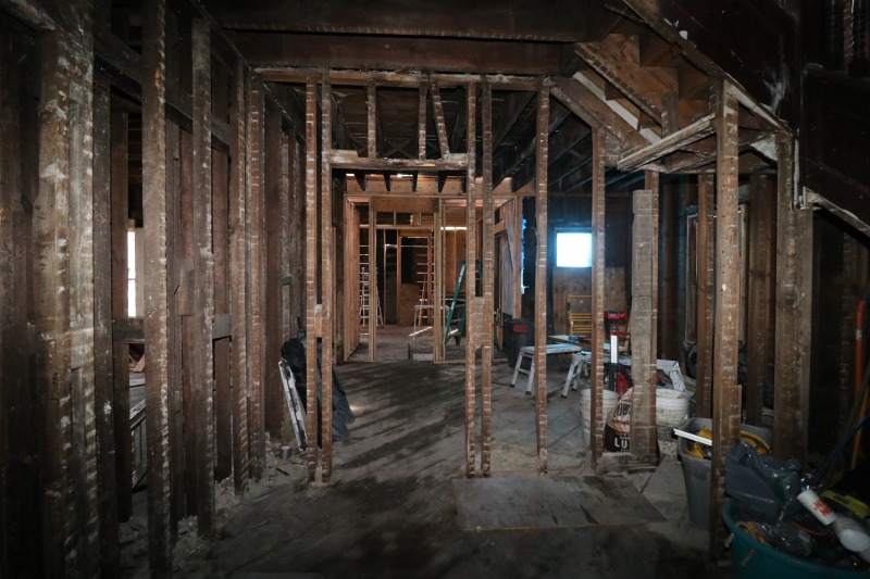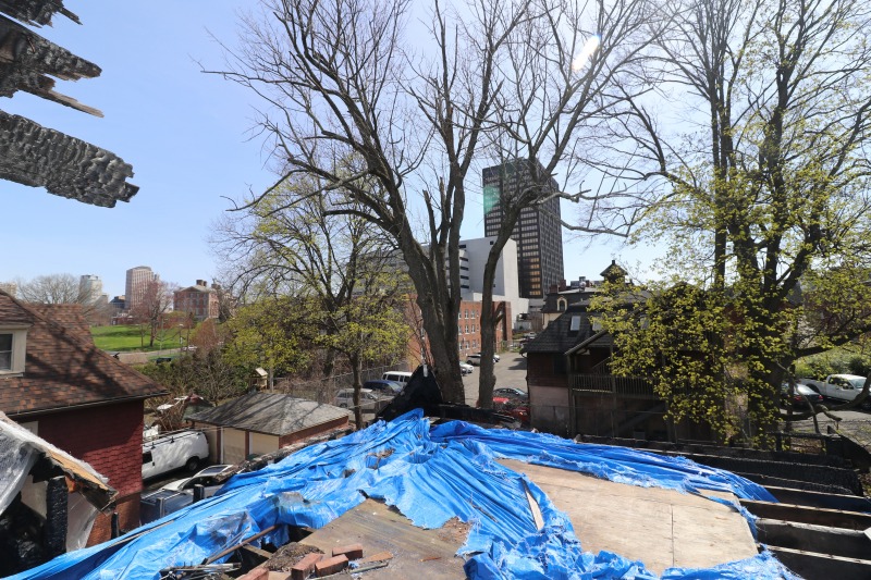 The future kitchen is starting to take shape. The view from the third floor is extraordinary on a sunny day like today. That’s Tony Mein at work on the second floor. And then there’s a couple of shots of the front of the house, as the flowering trees start to blossom.