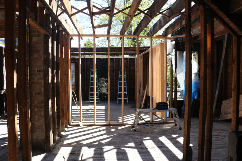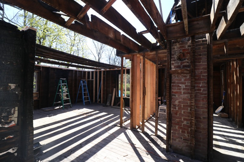 Demolition began on the third floor, as we get ready for the new roof to be installed. This action brought a lot of sunshine into the house, so there are some additional photos of the second floor, too.