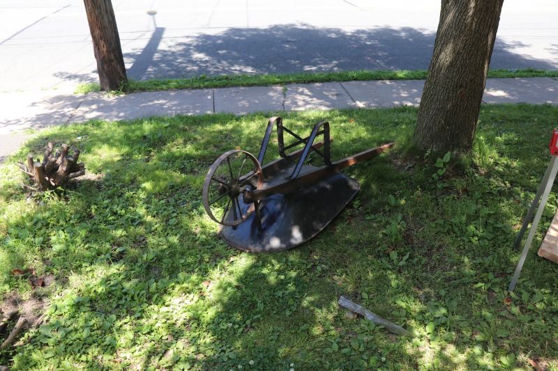 Work on the front porch, an old wheelbarrow, and Tony Mein.