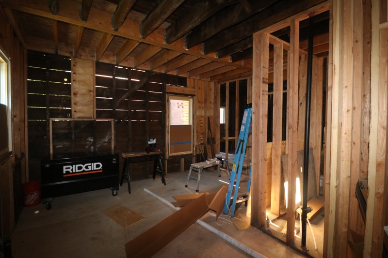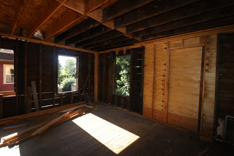 New walls, new framing, new lots of things – plus I really like the new wood glow coming from the second floor. Did I mention the roof on the front porch is finished?