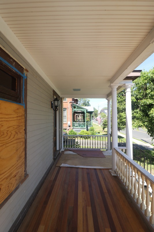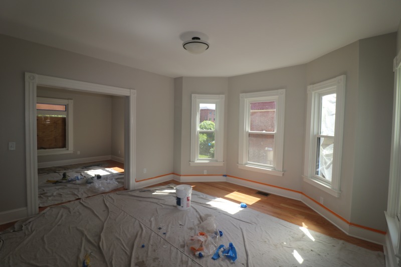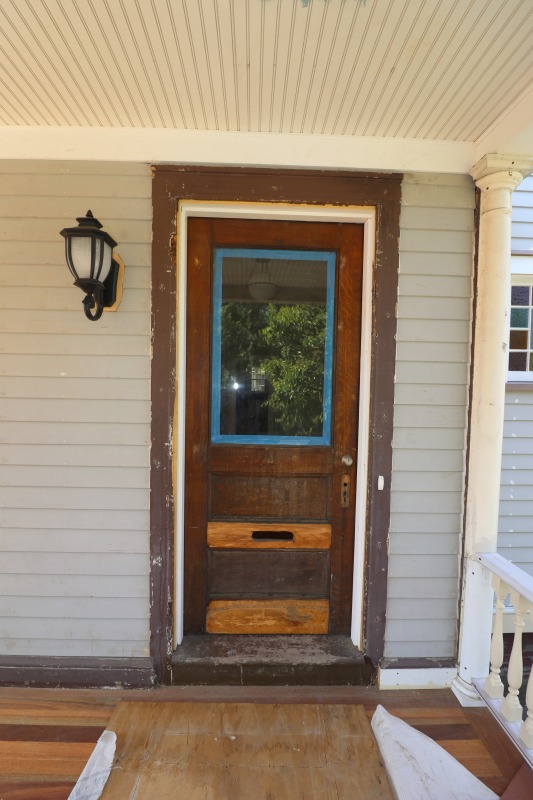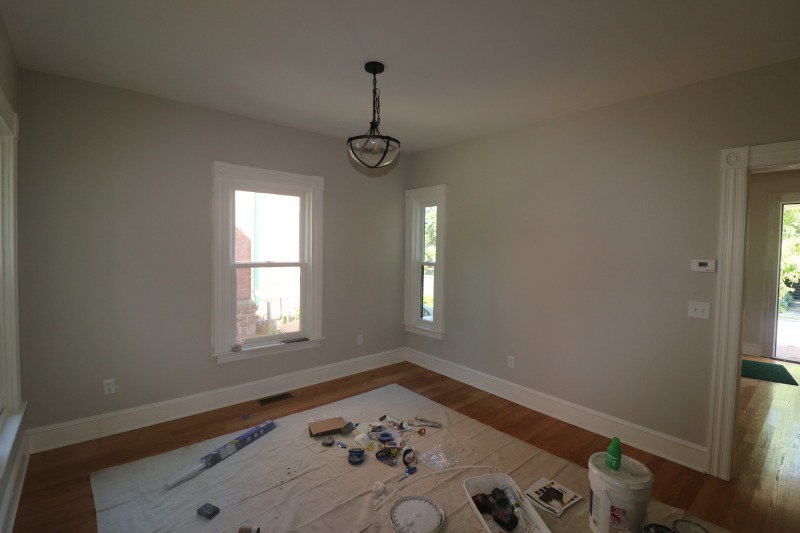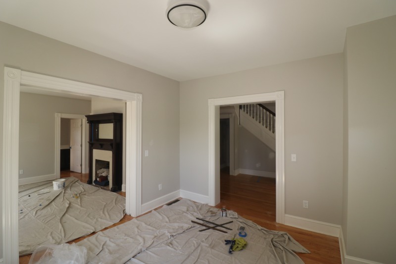 Painting inside. Porch and front door outside.