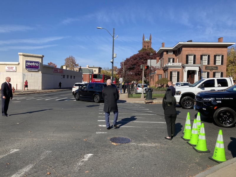 The funeral for Wethersfield firefighter was held today at the Cathedral of Saint Joseph. Both Farmington Avenue and Asylum Avenue were closed for the funeral.